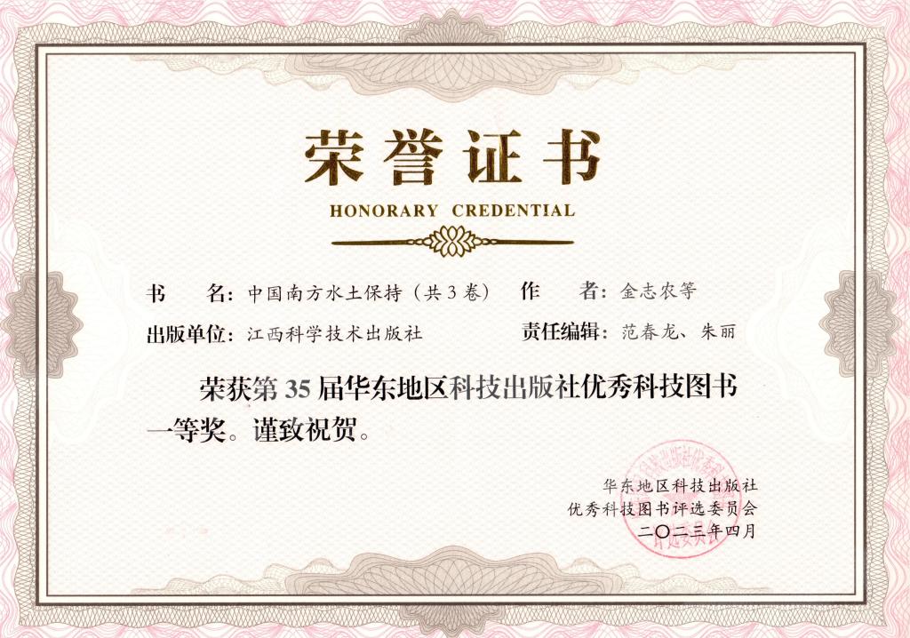 日前,第三十四届、第三十五届华东地区科技出版社优秀科技图书评选会在山东曲阜圆满落幕。由贝博官网南方水土保持研究会牵头组织编写完成,原贝博官网党委书记金志农研究员任主编的《中国南方水土保持》丛书(三卷本)荣获华东地区科技出版社优秀科技图书一等奖。