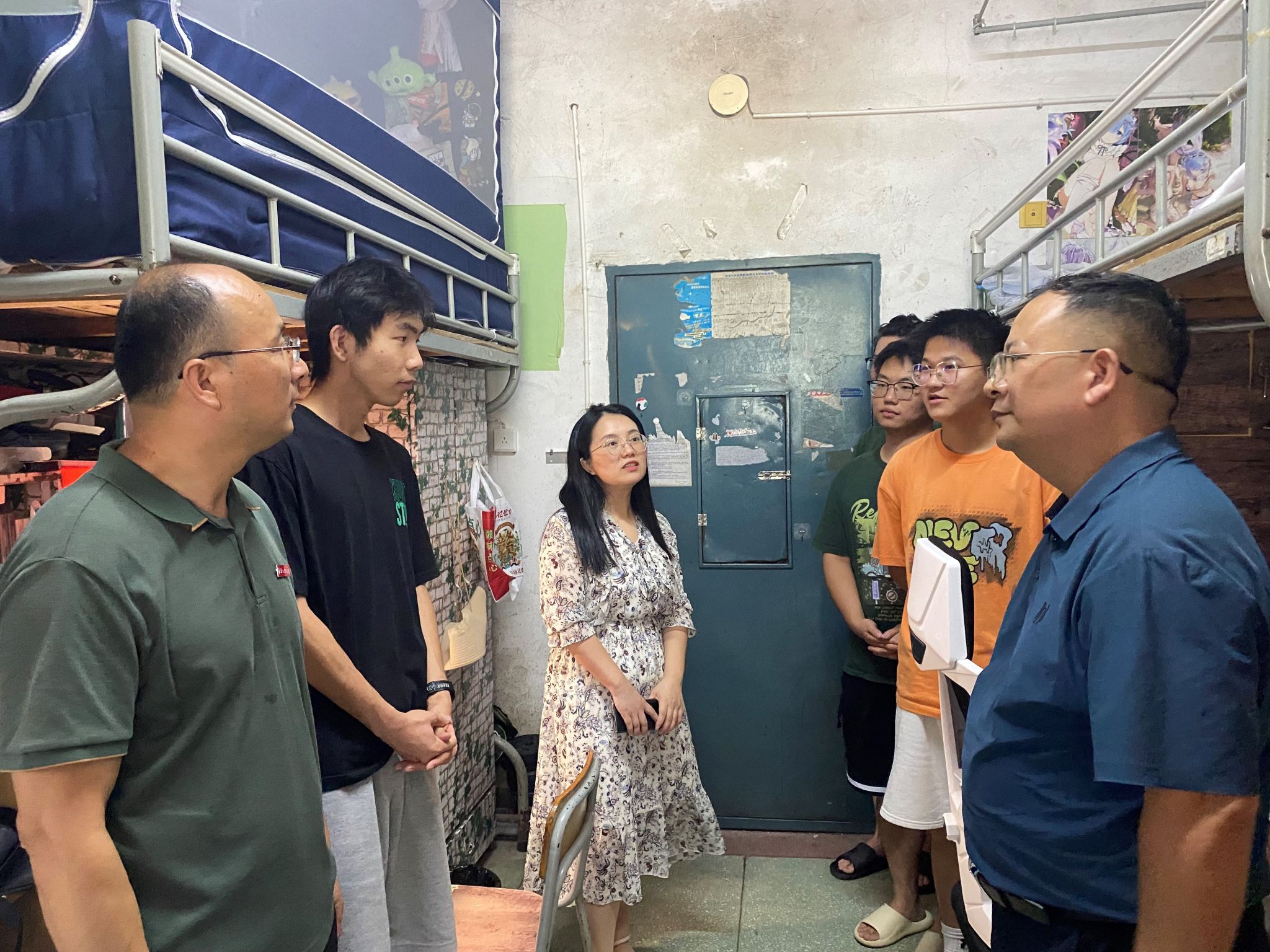 7月12日,ballBET贝博BB艾弗森党委书记曹庆、流域生态智能监测与综合治理江西省重点实验室主任黄荣珍、党委副书记宋友根在辅导员陪同下深入学生宿舍,亲切看望暑期留校学生。