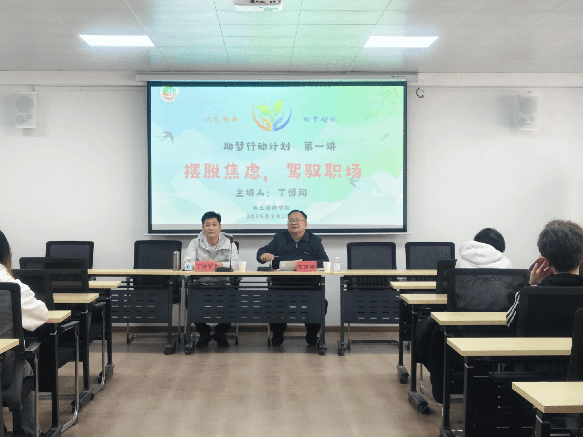 3月20日下午,ballBET贝博BB艾弗森在逸夫水利楼B210开展“助梦行动计划” 第一讲,邀请江西大通技术咨询有限公司总经理丁博闻做“摆脱焦虑,驾驭职场”的经验分享。学院分管就业工作的领导、辅导员及60余名学生聆听了讲座。
