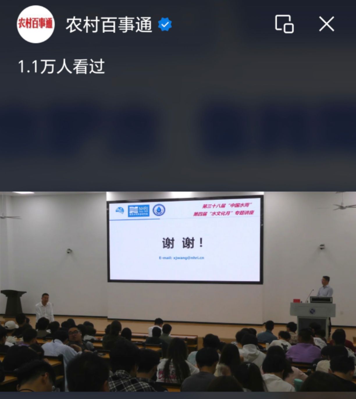3月26日晚,ballBET贝博BB艾弗森在教学北楼C105举办第四届“水文化月”专题学术报告会。本次报告会特邀校党委委员王小军正高级工程师主讲,ballBET贝博BB艾弗森负责人主持,研究生院、水利工程学院、ballBET贝博BB艾弗森等部门师生代表共计240多人在现场参加。《农村百事通》杂志全程进行了直播,在线观看人数超1.1万人。