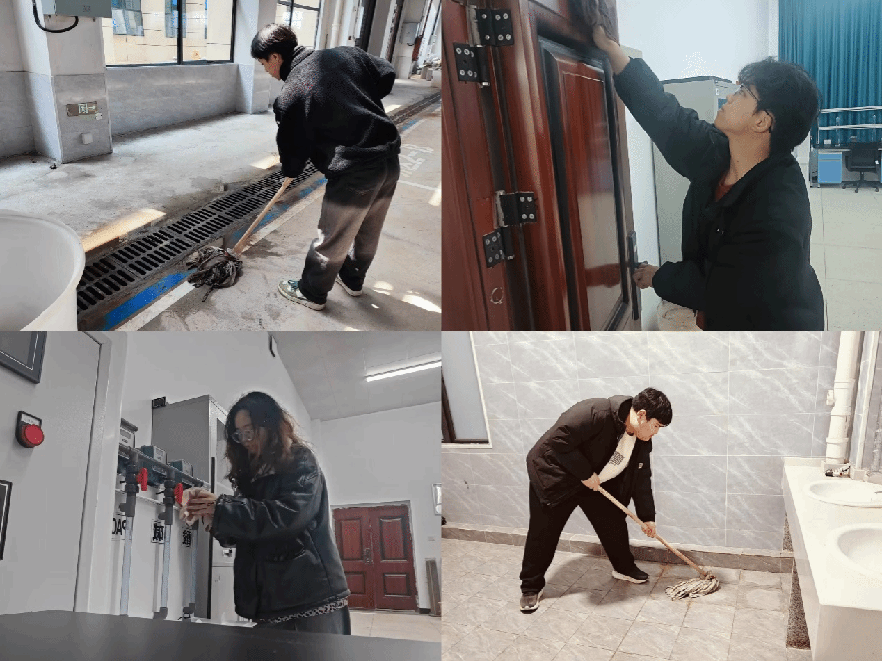 活动期间,30名同学踊跃投身其中,齐聚水土保持馆。他们手持扫帚、抹布等清洁用具,明确分工。有的专注于擦拭楼梯扶手与门窗,抹去层层污渍,使其光亮如新;有的俯身清扫楼道地面,将灰尘碎屑一扫而空;还有的悉心整理展柜杂物,确保陈列井然有序。同学们不放过任何一处细微角落,对水土保持馆展开全方位、深层次清洁,让馆内处处重绽整洁光芒。